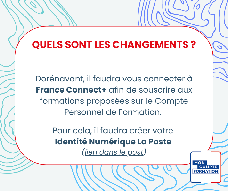 Dés le 25 octobre, https://lnkd.in/e2r3f-kG vous demandera de vous connecter grâce à votre Identité Numérique La Poste pour accéder aux formations proposées au CPF.